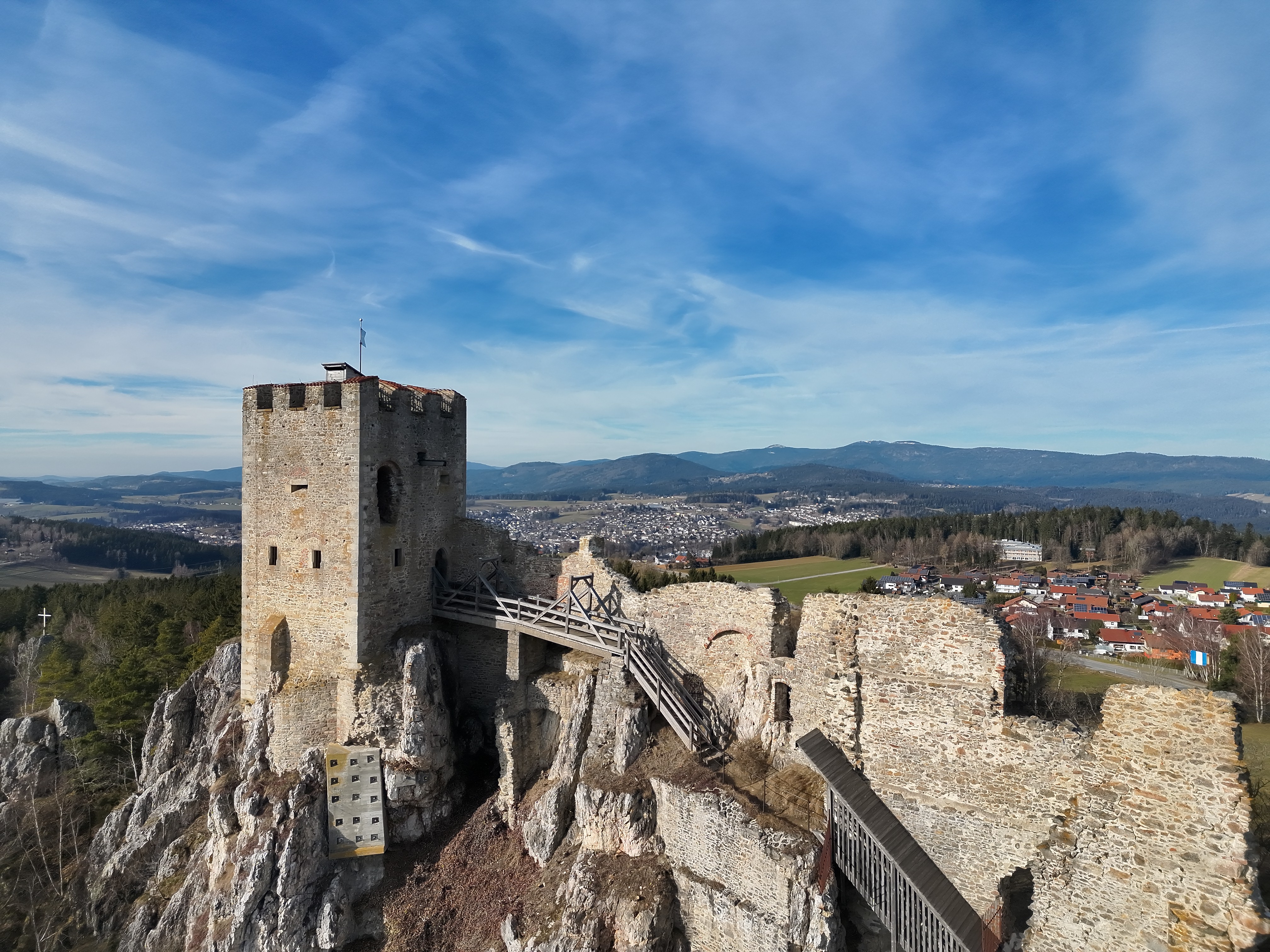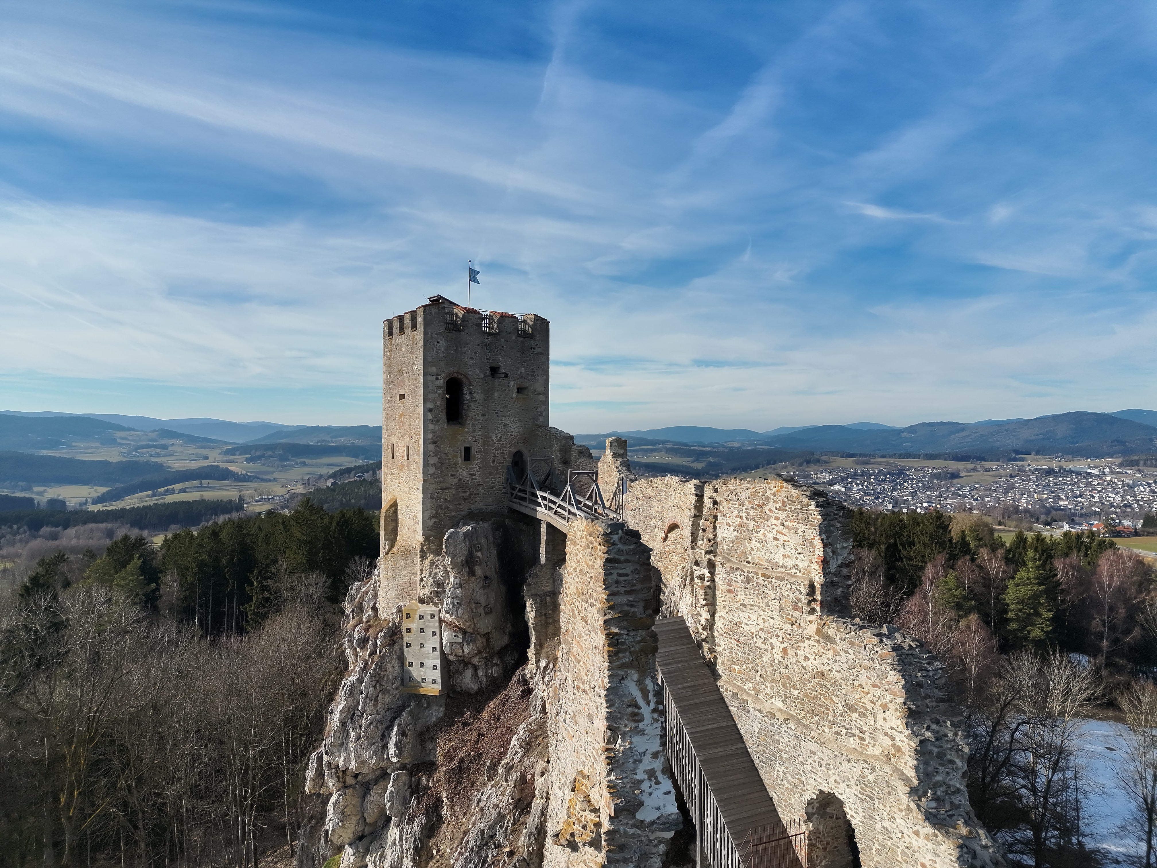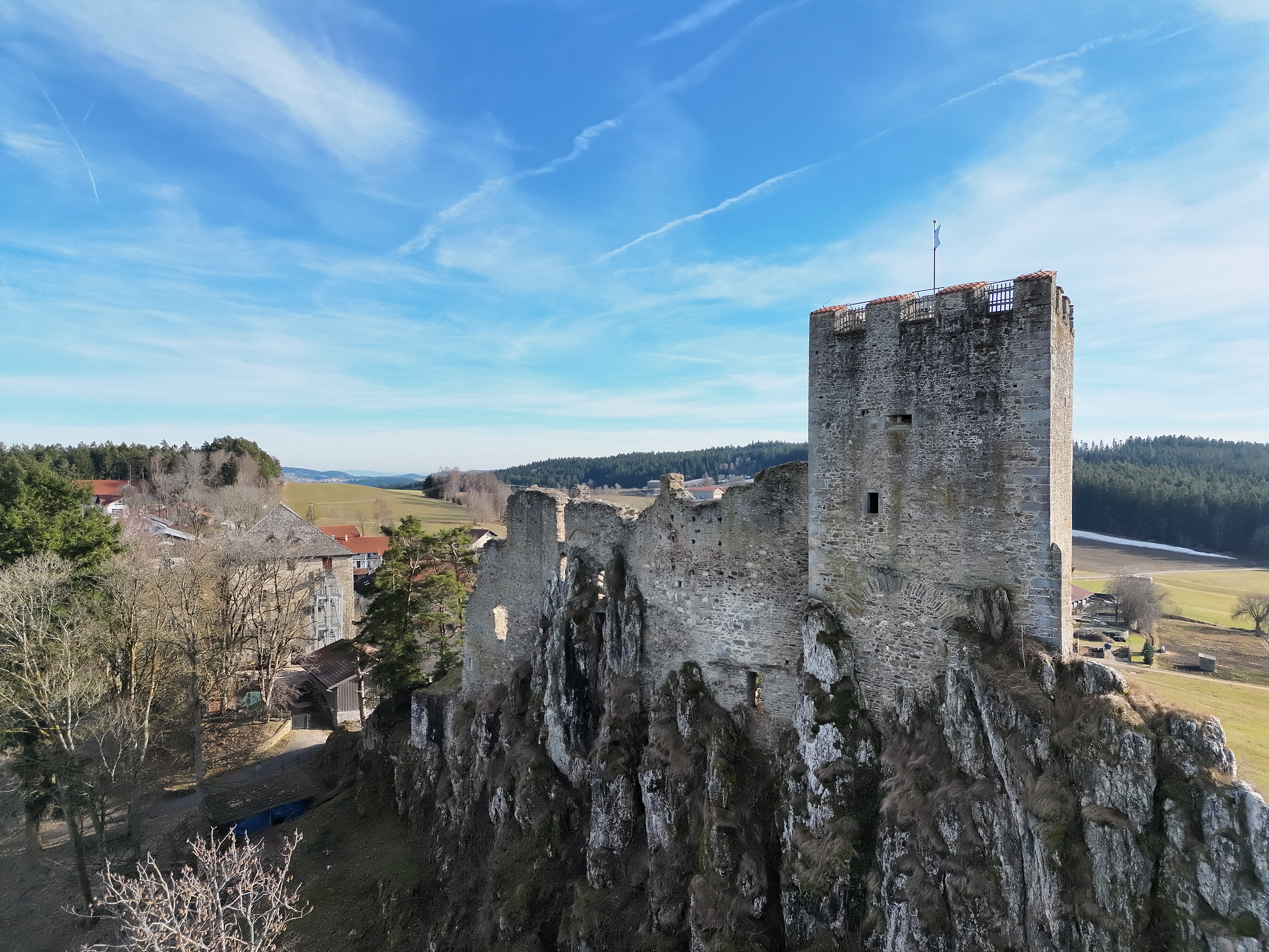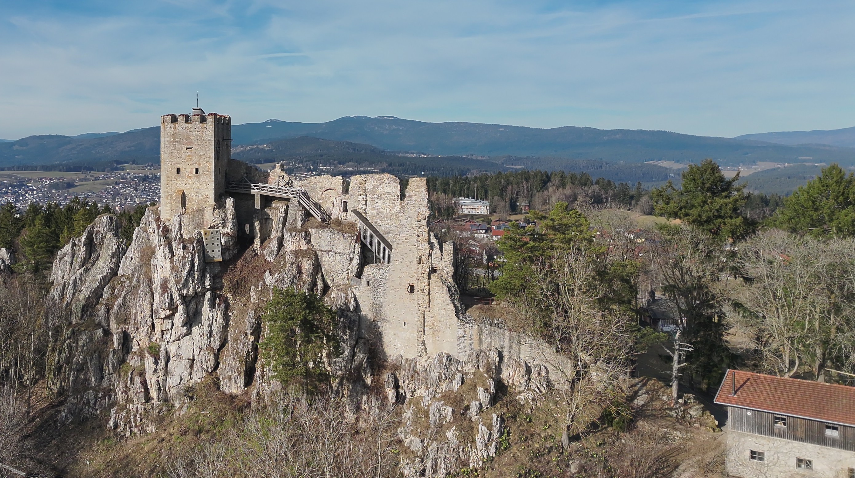Drei Kilometer südlich der Kreisstadt Regen gelegen, erheben sich auf einer Höhe von 760 m NN die Mauerreste der wohl spektakulärsten Burganlage im Herzen des Bayerischen Waldes. Von der auf Pfahlquarzgestein errichteten Burg können sie in schwindelerregenden Höhen den atemberaubensten Rundblick über den „Nordwald“ genießen. Um Ihnen, Ihren Mitmenschen und der Nachwelt dieses Kultur- und Naturdenkmal näher zu bringen, zu beleben und zu bewahren, haben wir es uns zur Aufgabe und Verpflichtung gemacht, uns fördernd für die Erhaltung und Erkundung der Burgruine Weißenstein einzusetzen. |
